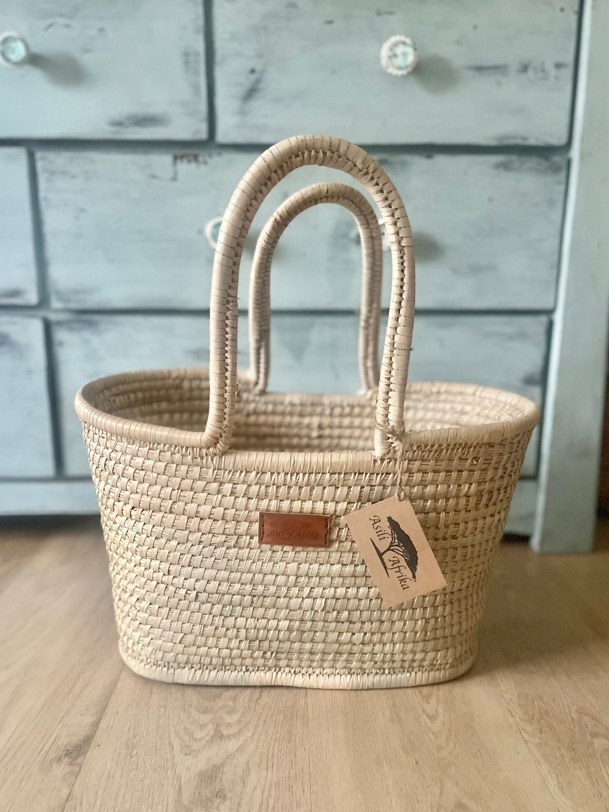 These Malawi baskets are made from naturally dried palm leaves or grasses & the colour splashes derive from natural dyes. These are sturdy baskets perfecting for filling up with produce at your community market or can be used as a craft basket or alternative to a handbag. Every basket is unique as they are handmade.